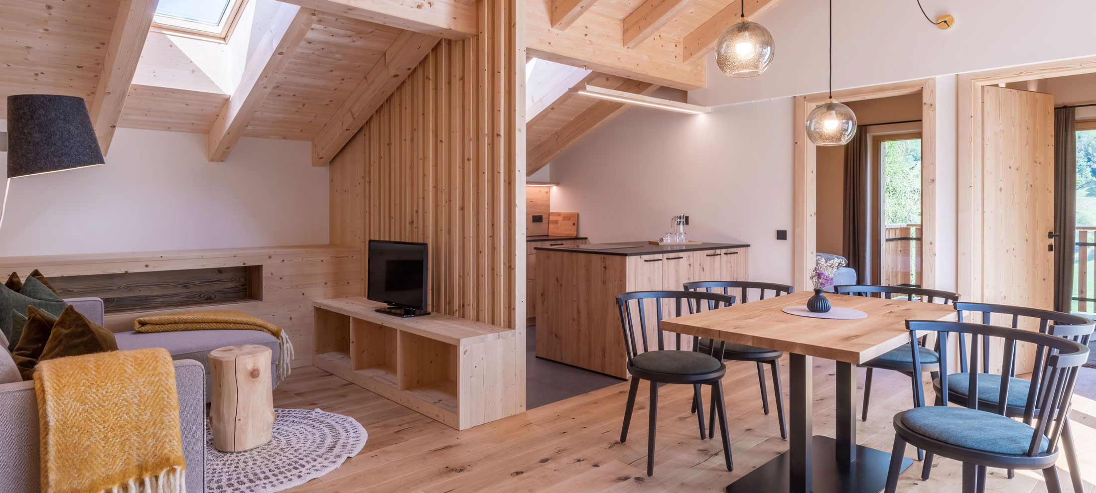 This spacious attic flat for up to 5 guests comes with 2 separate bedrooms and balconies. Spending the night cooking together at the kitchen block or indulging in an extensive breakfast on the private roof terrace will make holiday hearts beat faster. The terrace offers breathtaking views of St. Magdalena and the Geisler peaks. Whether as a family or with friends… this flat offers more than enough space and privacy for a relaxing stay. The name of the “Furchetta”, the second main peak of the Geisler group, derives from the ancient Latin word for fork, “Furca”, as the shape of the peak suggests.